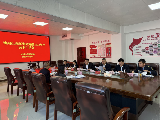 2月4日上午,博州生态环境局党组召开2025年度民主生活会。自治区生态环境厅、自治州纪委监委驻州农业农村局纪检监察组、自治州2025年度民主生活会督导组有关成员到会指导,局党组书记、副局长王雷主持会议,党组班子成员及县处级干部参加会议。