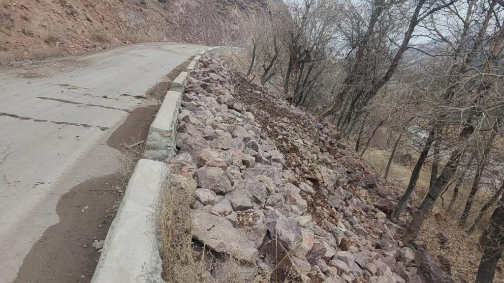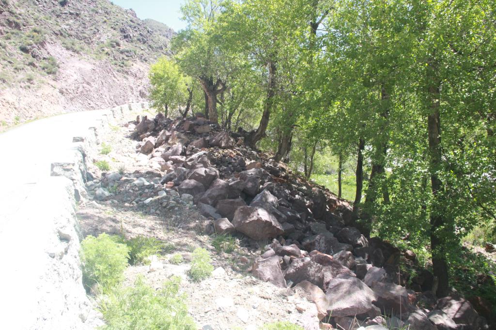 ▲公路旁河道岸坎处块石弃渣整治后现场,保护了河道河谷林。