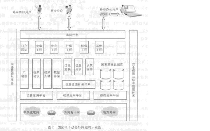 政务外网广域骨干网:构建政务外网宽带骨干网,实现中央与32个省级单位的互联;