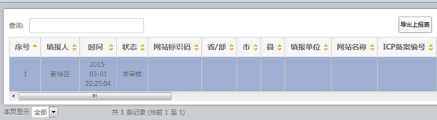 组织单位可使用系统“导出上报表”功能,导出政府网站和栏目(系统)基本信息,并生成excel文件格式的上报表,打印签字盖章后呈报上级组织单位。