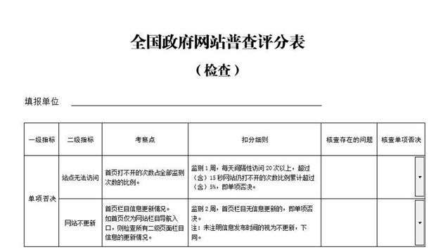 全国政府网站普查评分表