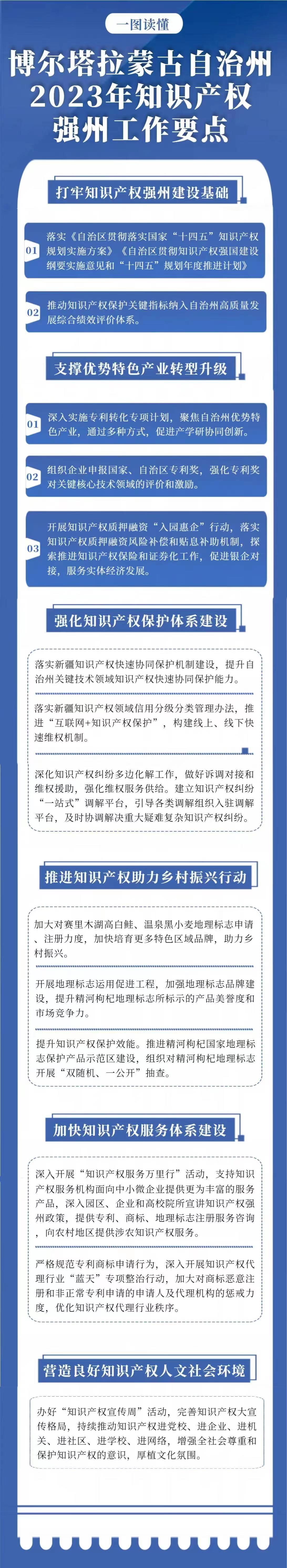 相关信息:【关于印发《博尔塔拉蒙古自治州2023年知识产权强州工作要点》的通知】