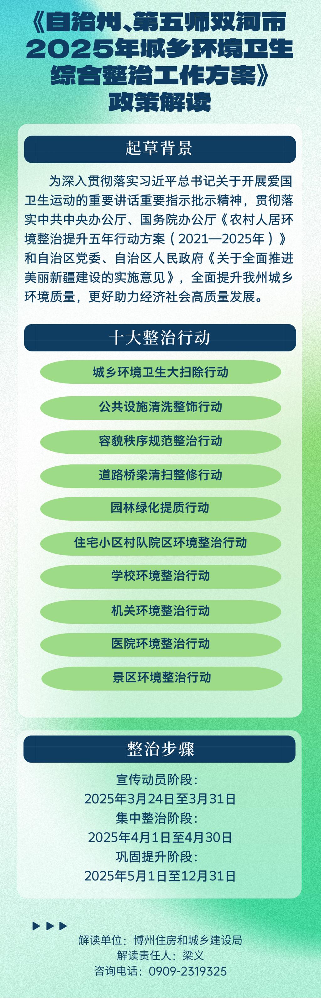 相关信息:【关于印发自治州、第五师双河市2025年城乡环境卫生综合整治工作方案的通知】