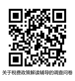 为深入贯彻落实中办、国办印发的《关于进一步深化税收征管改革的意见》,了解纳税人缴费人在税费政策解读辅导方面的实际需求,增强解读辅导产品的实效性、精准性、及时性,助力税费政策落实落细,我们编制了《关于税费政策解读辅导的调查问卷》。公众可通过扫描以下二维码的方式,参与问卷调查,提出宝贵意见。