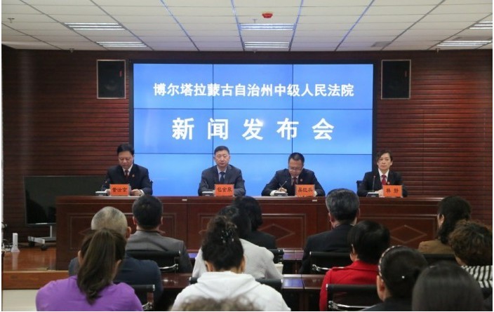 在发布会上,中院新闻发言人通报了博州两级法院扫黑除恶专项斗争工作的开展情况,通报了仲某、姜某等16人非法拘禁、敲诈勒索、非法吸收公众存款、高利转贷罪案件审理情况。