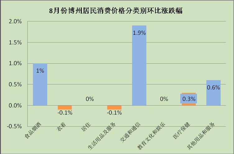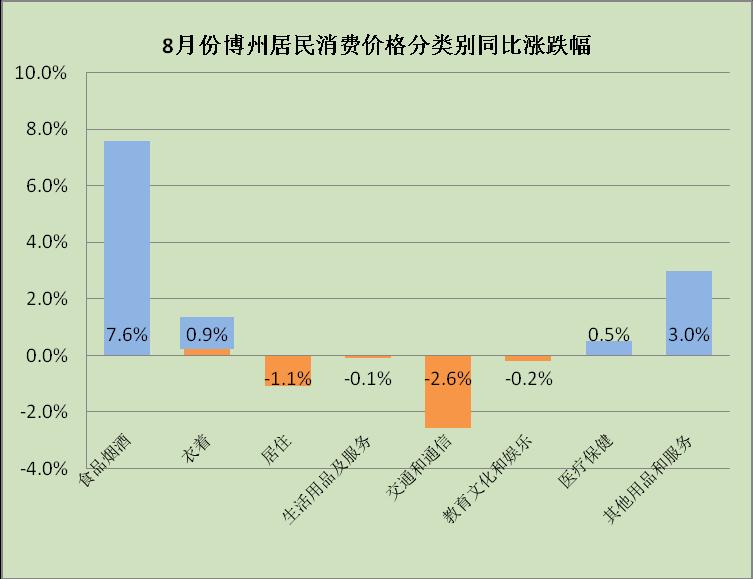 据国家统计局反馈资料显示:8月份,博州CPI同比上涨2.1%,高于全国平均水平(1.5%)0.6个百分点,在全疆排列(14个地州由高到低排序)第7位。
