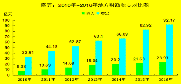 地方财政支出92.15亿元,增长11.2%,一般公共预算支出86.94亿元,增长14.7%。其中,住房保障支出3.74亿元,下降55.6%;节能环境保护支出3.26亿元,下降34.7%;城乡社区事务支出10.47亿元,增长39.8%;教育支出13.28亿元,增长0.3%;医疗卫生支出5.38亿元,增长9.4%;一般公共服务支出9.19亿元,增长21.9%;文化体育与传媒支出3.86亿元,增长2.1%;科学技术支出1.75亿元,增长49.6%。