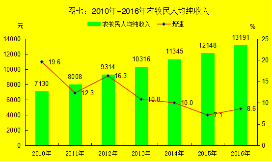 城镇居民人均可支配收入27019元,增长9.1%;农牧民人均纯收入13191元,增加1043元。