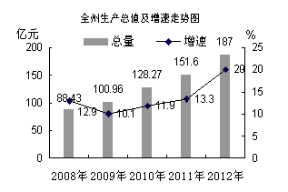 初步核算,全州生产总值226.8亿元,比上年现价增长22.4%。其中地方生产总值177.8亿元,现价增长20.9%。按三次产业划分,第一产业增加值42.27亿元,现价增长9.7%;第二产业增加值48.3亿元,现价增长36.0%;第三产业增加值87.26亿元,现价增长19.4%。地方三次产业结构为23.7︰27.2︰49.1。
