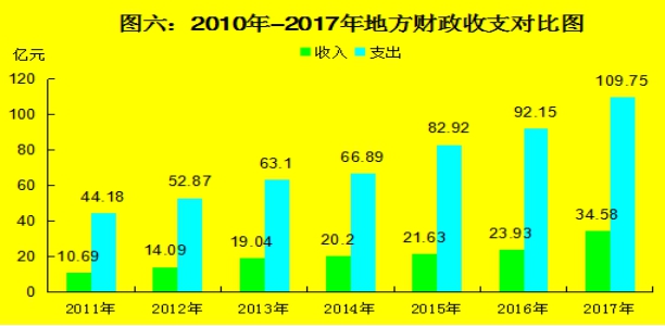 地方财政支出109.75亿元,增长19.1%,一般公共预算支出106.41亿元,增长22.39%。其中,住房保障支出6.61亿元,增长76.74%;节能环境保护支出2.94亿元,下降9.82%;城乡社区事务支出6.81亿元,下降34.96%;文化体育与传媒支出5.11亿元,增长32.38%;教育支出17亿元,增长28.01%;医疗卫生与计划支出5.87亿元,增长9.11%;一般公共服务支出9.87亿元,增长7.4%;社会保障和就业支出10.2亿元,增长23.47%;科学技术支出1.81亿元,增长3.43%。