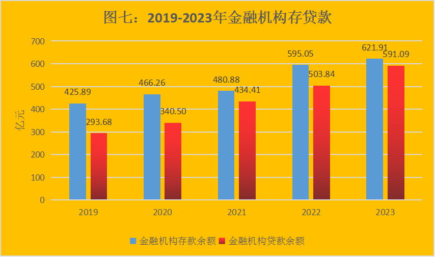 年末全州金融机构各项存款余额621.91亿元,比上年增长4.5%。其中,住户存款391.1亿元、增长13.2%,非金融企业存款119.94亿元、下降6.8%,机关团体存款87.98亿元、下降5.7%,财政性存款23.88亿元、下降13.1%。年末全州金融机构各项贷款余额591.09亿元、增长17.3%。其中,住户贷款133.23亿元、增长16.2%,企(事)业单位贷款457.86亿元、增长17.6%。短期贷款余额192.26亿元、增长18.4%;中长期贷款余额382.36亿元、增长17.8%。