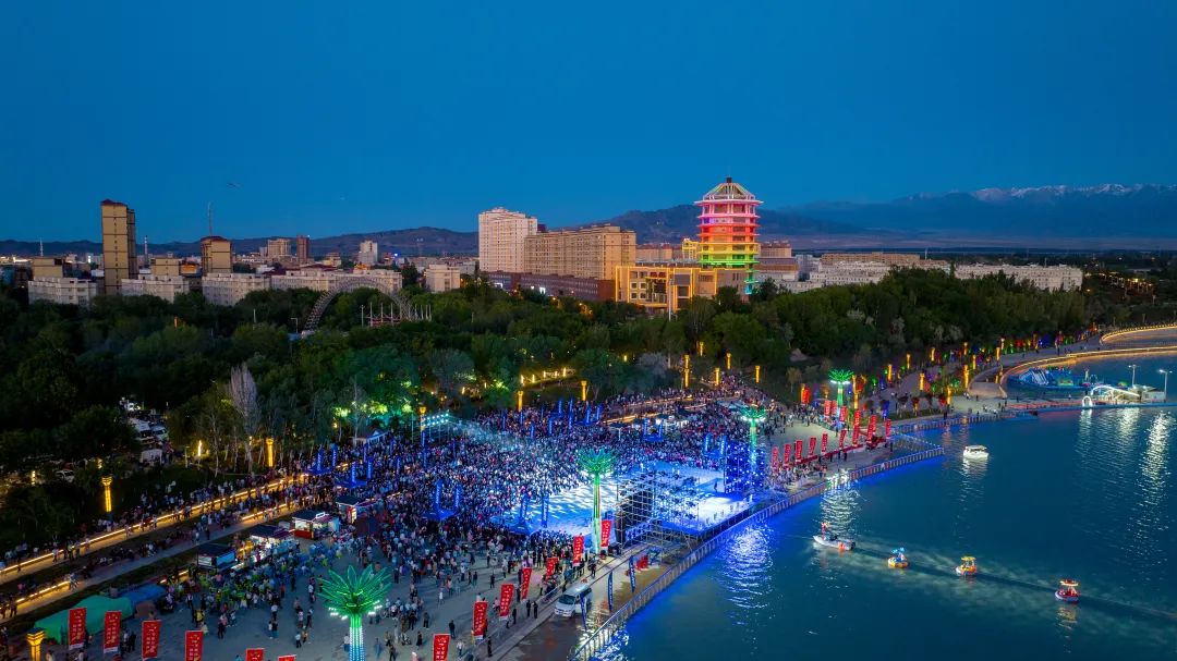 激情五月,相聚杞乡,如约而至,共赴骑行盛会。5月27日22时,由自治区体育局、自治区文旅厅、博州人民政府、第五师双河市人民政府共同主办的中国新疆第十六届环赛里木湖公路自行车赛暨中国自行车运动骑游大会开幕式文艺晚会在精河生态园亲水河岸广场举行,拉开了本届赛事的序幕。