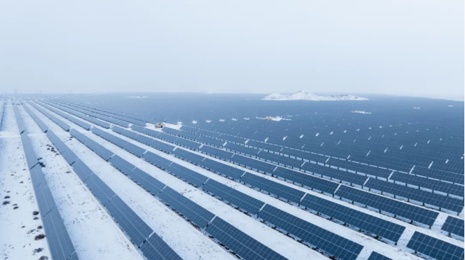 记者在现场看到,项目的新能源部分已建设完毕,149.76万个光伏板犹如能量收集器,将持续不断地把太阳能转化为电能向外输送。天气虽冷,但工人们依旧忙碌。在项目储热型光热部分的建设现场,近200米高吸热塔的建设接近尾声,各项任务有序推进。