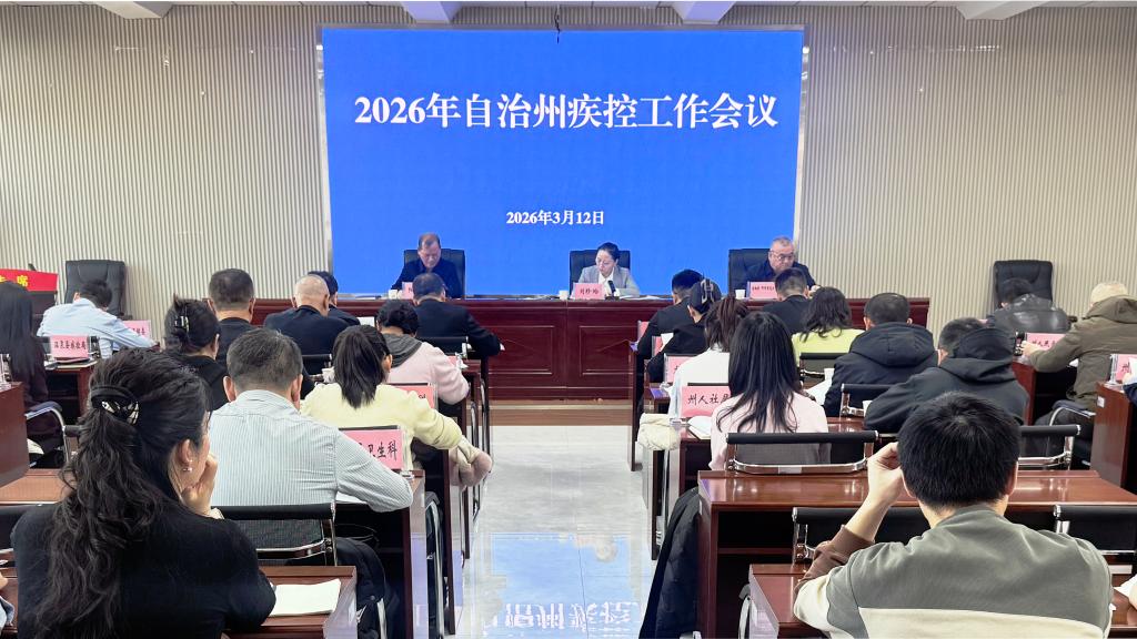 3月12日,自治州卫生健康委(疾控局)召开2026年全州疾病预防控制工作会议。会议全面总结2025年及“十四五”时期全州疾控工作成效,系统分析当前疾控工作面临的形势与问题,科学谋划“十五五”发展思路,安排部署2026年重点工作任务,为全州疾控事业高质量发展指明方向。自治州卫生健康委党组书记、副主任刘珍玲出席会议并讲话,自治州卫生健康委党组副书记、主任居勒提·阿布里克木主持会议。