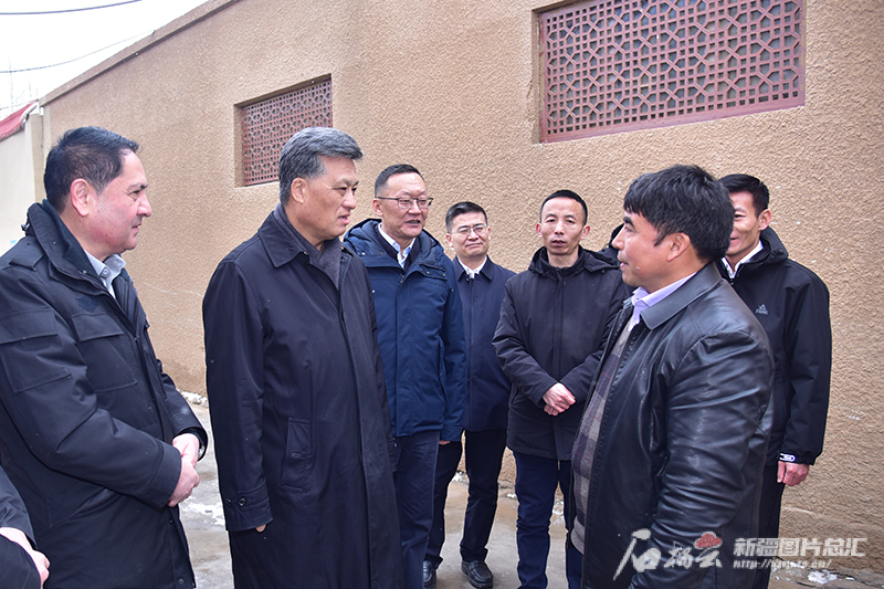 2月6日,自治区党委书记马兴瑞在和田县巴格其镇故城村同村民吾布力艾山·阿布都拉交流,详细了解其家庭就业、生活保障等情况。张勇摄