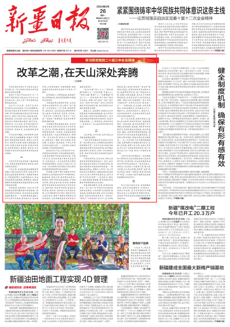 党的二十届三中全会召开,又一个分量千钧的坐标立起,2500万天山儿女和全国人民一道汇入进一步全面深化改革的滚滚洪流。