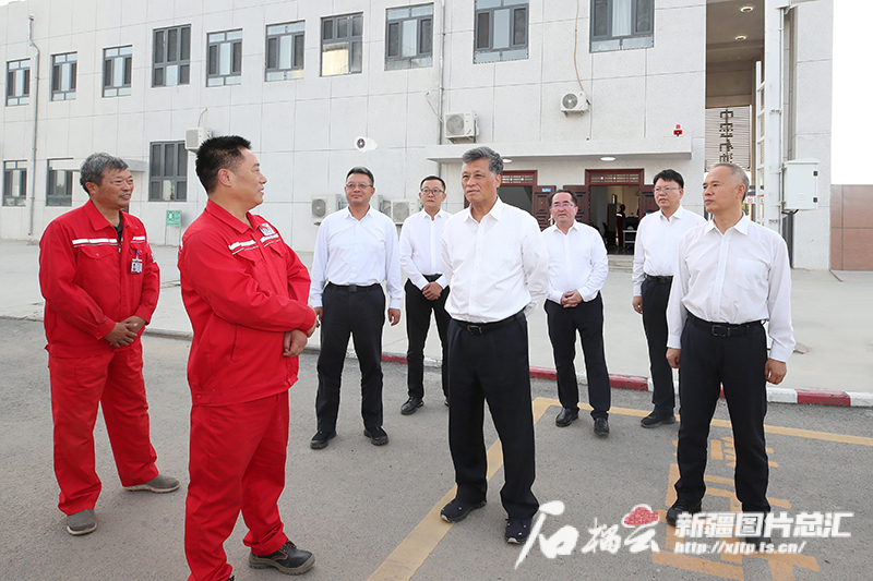 马兴瑞来到中曼石油温北联合站,听取温宿县油气分布、勘探、开采情况介绍,深入了解企业经营发展情况,希望企业积极参与新疆油气勘探开发和增储上产工作布局,加大投入力度,持续提升油气产量,为保障国家能源安全贡献更大力量,推动油气资源更好服务当地、惠及民生。