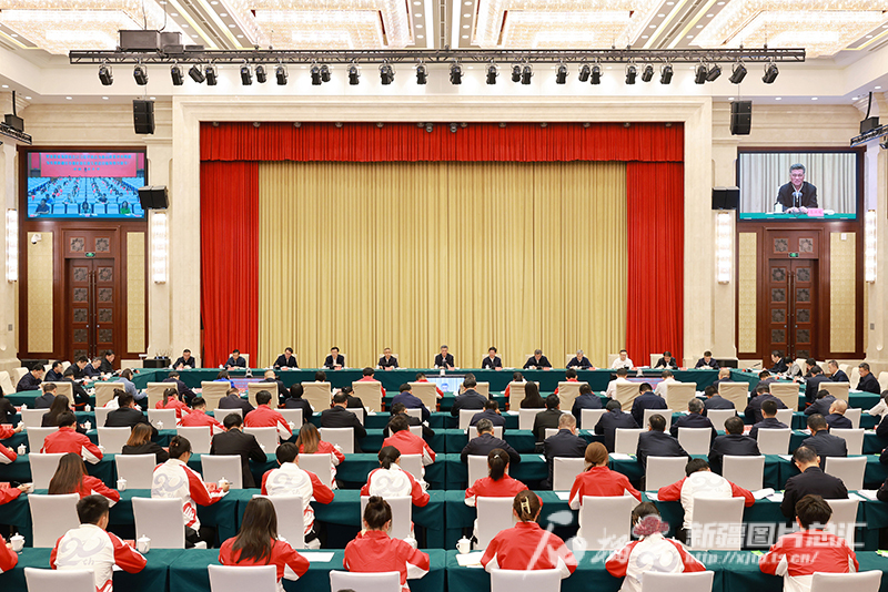 王建新、哈丹·卡宾、王琳,自治区人大常委会、政协、兵团有关领导,自治区和兵团有关单位负责同志,西部计划志愿者代表等参加会议。各地州市、县市区和兵团各师市、团场设分会场。