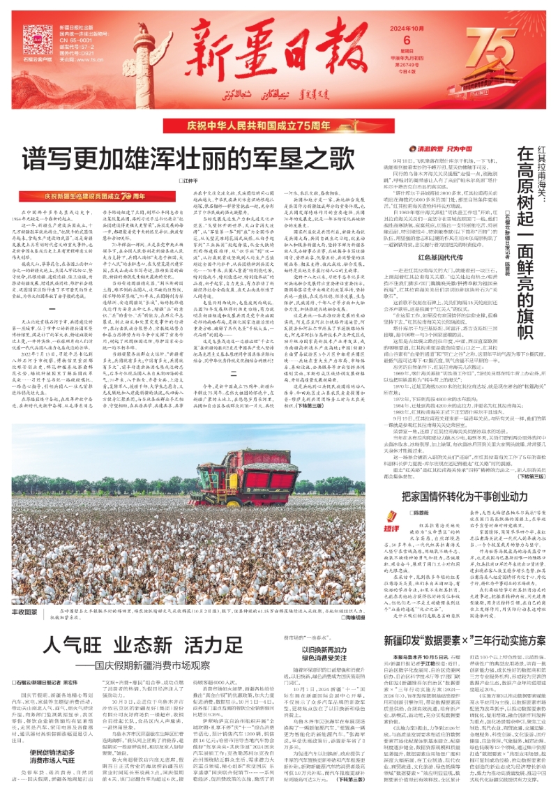 今年,是新中国成立75周年、新疆和平解放75周年。在伟大祖国的怀抱中,在新疆广袤的土地上,在悠悠岁月长河里,兵团和自治区各族群众同顶一片天,共饮一河水,水乳交融,唇齿相依。