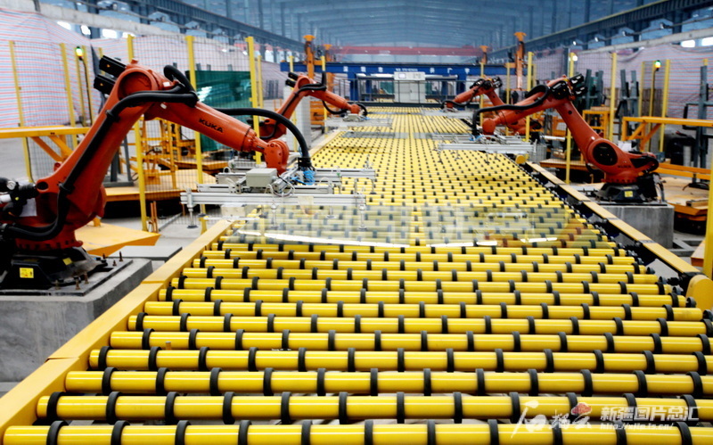 2016年8月,位于新疆生产建设兵团第五师的新疆普耀新型建材有限公司生产车间内景。新疆图片总汇资料图片