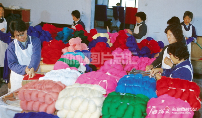 八一毛纺织厂生产的蜜蜂牌毛线,成为市场俏销商品(1982年摄)。新疆图片总汇资料图片