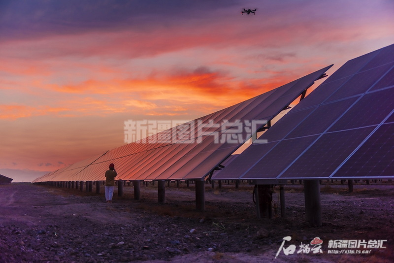 2017年5月9日拍摄的新疆生产建设兵团第十三师红山农场三塘湖风光电基地外景。王志清摄