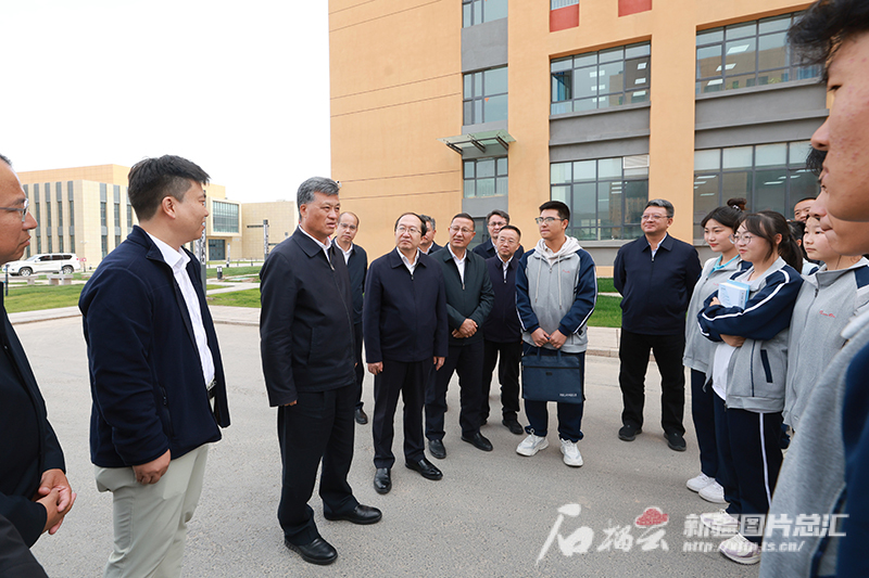 10月9日,自治区党委书记马兴瑞在克孜勒苏柯尔克孜自治州调研。这是马兴瑞来到新疆天山职业技术大学(克州校区)承接区,实地考察教学开展情况,与学校师生热情交谈。天山网-新疆日报记者 崔志坚摄