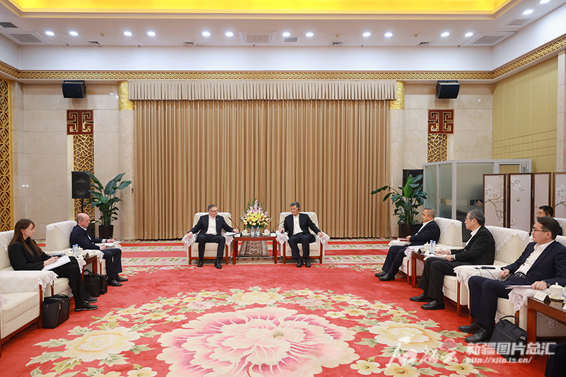 石榴云/新疆日报讯(记者 王兴瑞报道)自治区党委书记马兴瑞、自治区主席艾尔肯·吐尼亚孜12月16日在乌鲁木齐会见了白俄罗斯驻华大使切尔维亚科夫,围绕落实中白两国元首重要共识,深化中国新疆和白俄罗斯地方间交流合作,进行了深入交流。