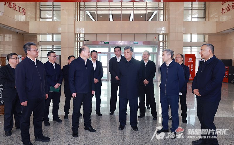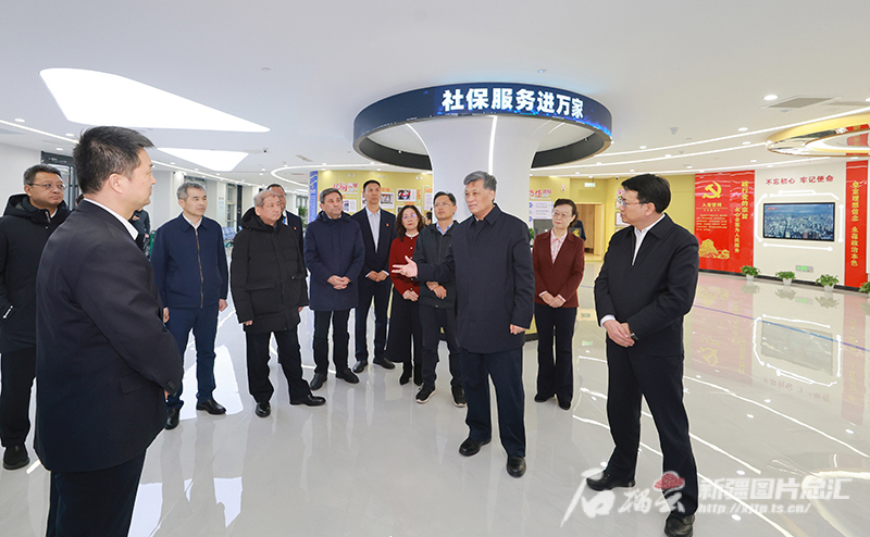 2月14日,自治区党委书记马兴瑞在自治区人社厅,走进社保中心察看新疆智慧社保平台运行状况,询问各项业务实时办理情况。石榴云/新疆日报记者 崔志坚摄