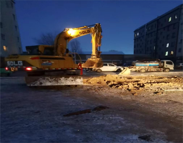 到达现场后,城建办主任与维修工进行逐一排查,户外排水管破裂。城建办主任立即组织维修全体人员商讨施工方案,最终决定用探照设备确定漏水点,立即对损坏部位进行更新管道处理。在时间紧任务重的情况下,维修师傅们不畏严寒、团结协作,经过两天的奋力抢修,终于将排水管道漏水点修复完毕,展现出了高效的执行力。