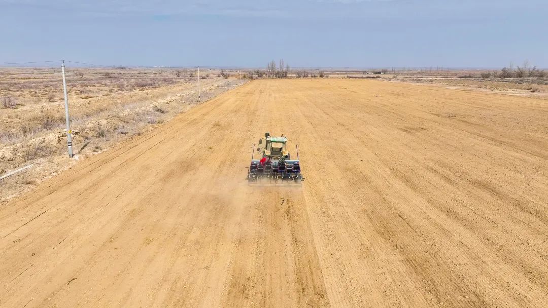 3月20日,在大河沿子镇呼苏木齐村种植户薛强的农田里,机械声隆隆作响,装载着北斗导航的小麦播种机在田间来回穿梭,一粒粒小麦种子被陆续播撒进地里。伴随着播种机的阵阵轰鸣声,铺设滴灌带、播种、覆土、平整等工序一次性就完成。薛强种植小麦已有3年,这几年,他采用精河县推广的科学化种植模式进行小麦播种,由于管理得当,再加上专业技术人员的全程指导,今年他对小麦种植充满了信心。“我们已经开始春播小麦,使用北斗导航装置的播种机效率很高,4至5小时就能完成播种。今年工作人员给我介绍了抗盐碱性好、抗倒伏能力强的小麦品种,预计今年产量能达到预期效果。”薛强说。