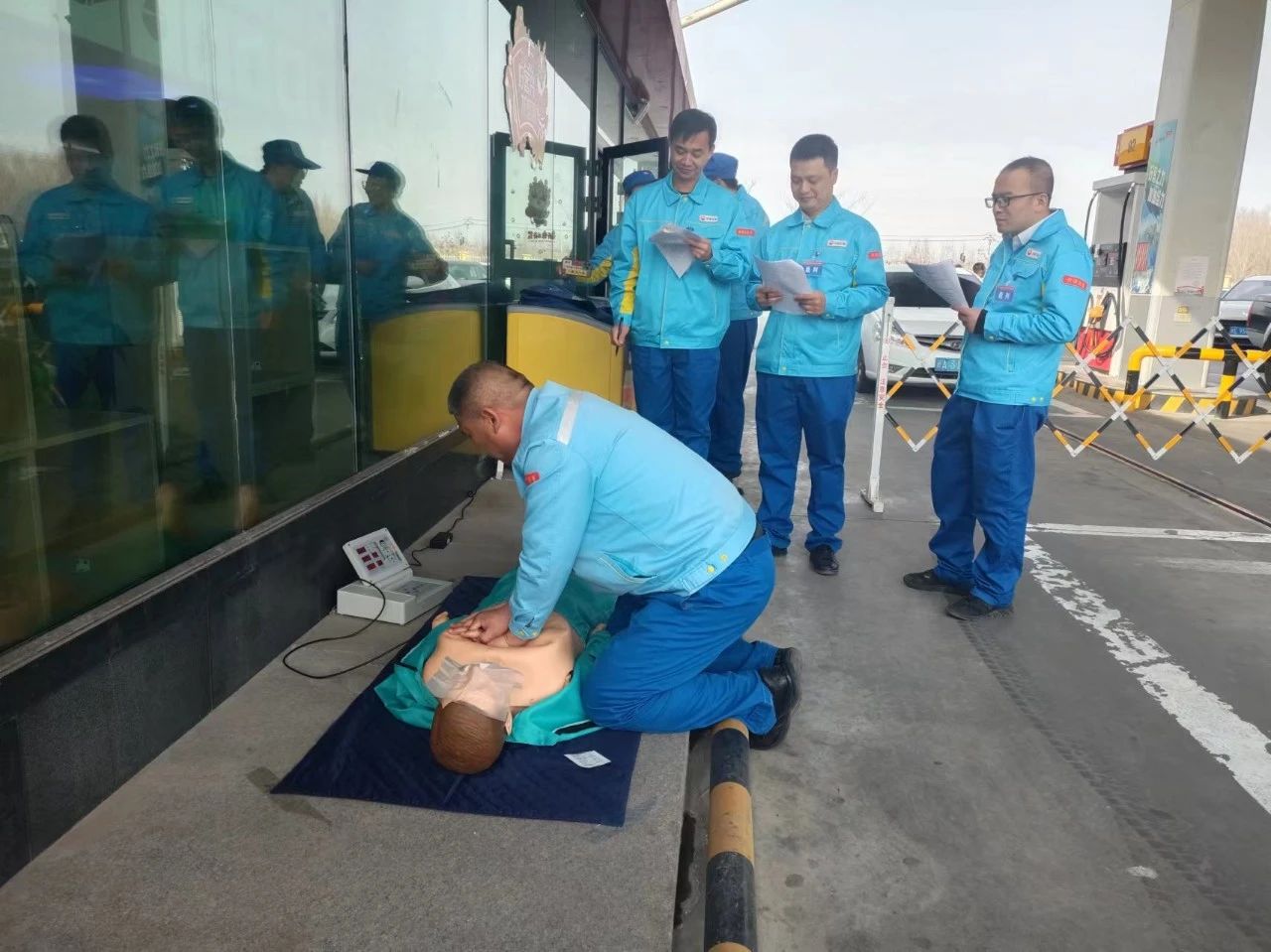 赛场上,40名选手各自拿出看家本领,全身心地投入到比赛的各环节中,在实操团体赛环节,参赛选手分工合作、配合默契,充分展现了应对现场突发情况的应急处置能力,进一步检验了加油站员工的服务技能和实际操作水平。
