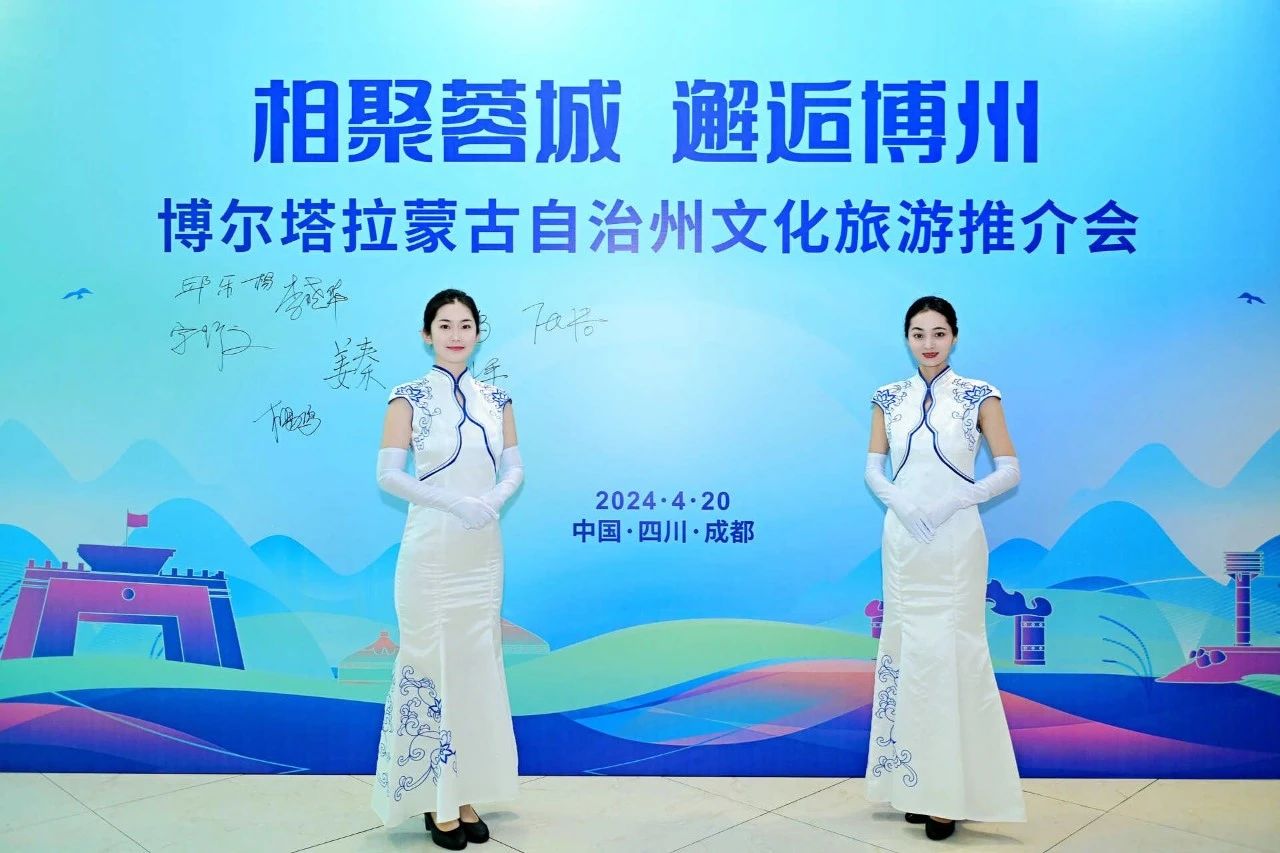 推介会播放了博州文旅宣传片,州文体广旅局做博州旅游资源、线路产品、优惠政策主题宣传推介,各县市、赛里木湖景区做旅游资源、线路开发、客源引进宣传推介。通过成果展、产品展、观看旅游宣传片、相互交流等多种形式,向成都展示博州特色旅游资源、特色美食、特色产品。现场还与相关旅行社、旅游企业进行座谈,开发“川博联动”“互惠精品旅游团、专项精品旅游线路,签订“引客入博”协议。