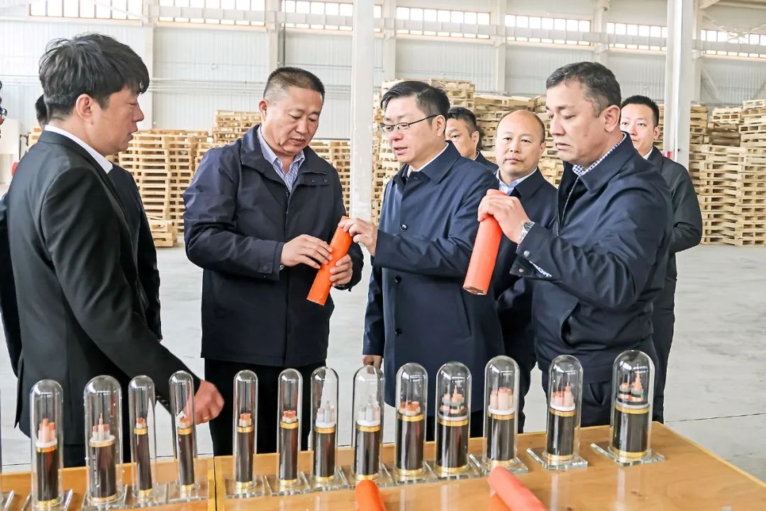 州党委书记王贵驷在新疆东风电缆低压电缆和高压电缆制造项目现场调研。
