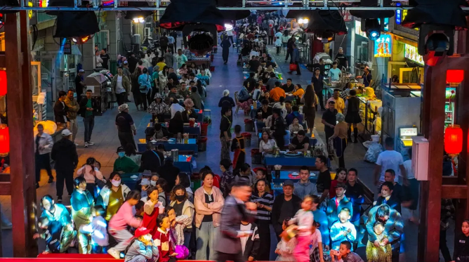 近年来,博乐市通过打造夜经济示范区,让市民享受夜生活的同时,激发消费活力,助推夜经济发展。截至目前,已成功打造现代中心城、商业步行街等夜间经济示范街区。