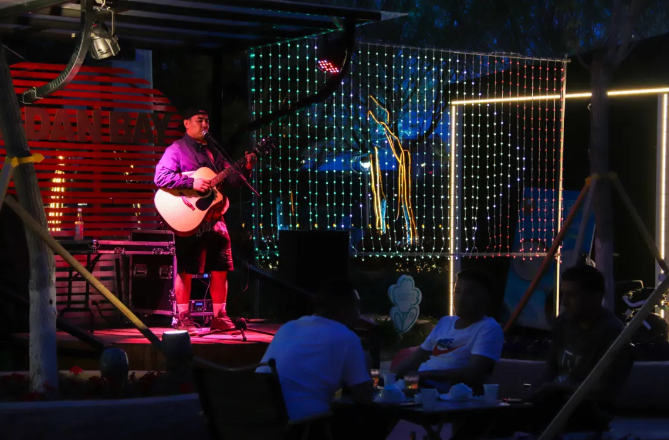 “我们购置了帐篷、配套桌椅板凳,做了草坪、亮化、美化,设置了各个网红打卡点,方便来夜市的人拍照打卡,美食也是挑选一些有特色的,有海鲜、牛骨头、架子肉等。”天台露营美食广场负责人刘朝坤说。
