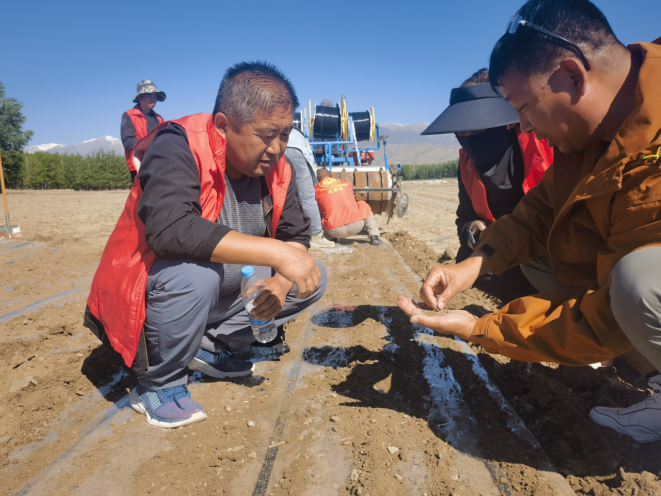 板蓝根抗旱耐寒,适应性广,是一种中药材,为十字花科植物菘蓝的干燥根,其性寒,味先微甜、后苦涩,根、叶都可入药,具有清热解毒、预防感冒、利咽之功效。2024年,温泉县农业农村局与查干屯格乡孟克图布呼村联合利用50亩良田进行板蓝根实验种植,推广特色产业种植。