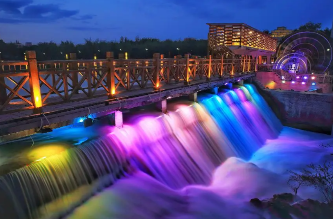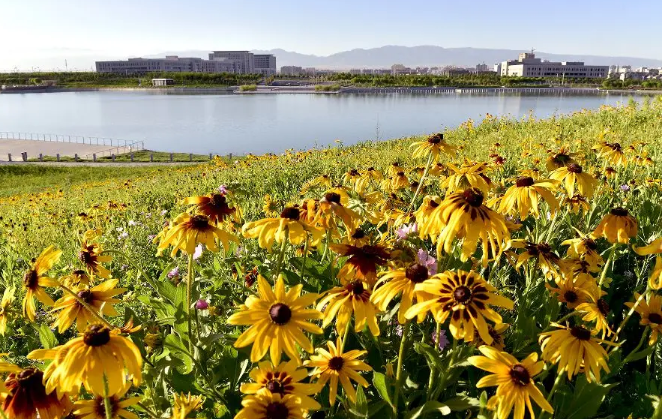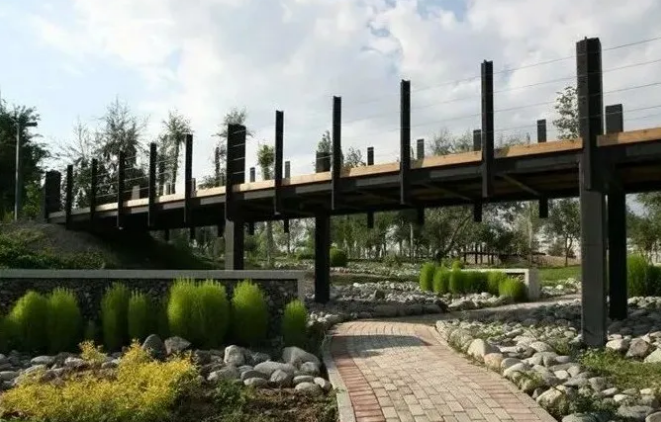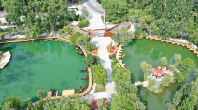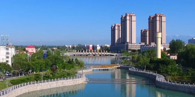 原先是星火干渠水系沿线,经过整治改造,由北至南分为自然康养、都市活力、印象博乐三个主题,打造秀丽宜人的城市生态滨水空间。
