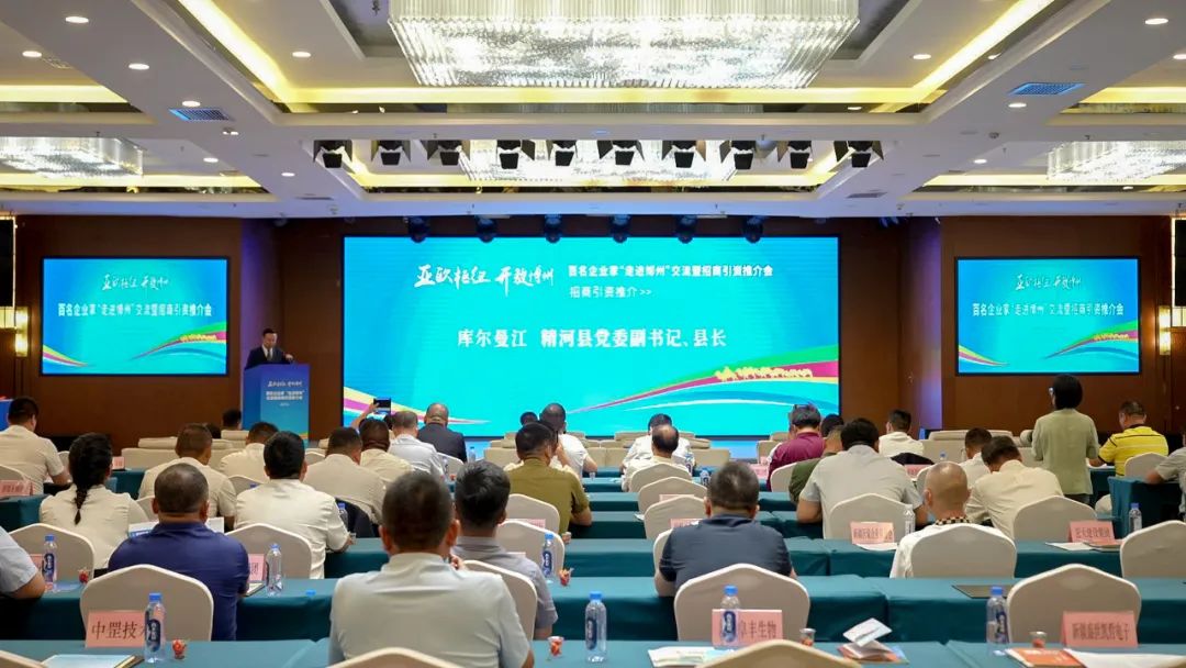 6月27日,第八届中国—亚欧博览会期间,百名企业家“走进博州”交流暨招商引资推介会在乌鲁木齐明园大酒店五楼多功能厅举行。精河县委副书记、县长库尔曼江,县委常委、宣传部部长赵萍在推介会上代表精河县做推介并与多家企业现场签约。