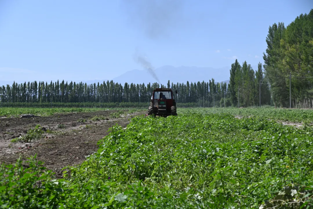 7月4日,阿合其农场二茬农作物的播种工作也在火热进行。种植户刘利平在自家瓜地里忙不停。在西瓜采收结束后,他便联系大型播种机,准备播种玉米。“今年西瓜亩产达到5000公斤,现在,我们正在犁地,把西瓜秧打进地里,增加土地肥力,为夏种二茬玉米做准备。这样算下来,预计今年收入能达到17万左右。”