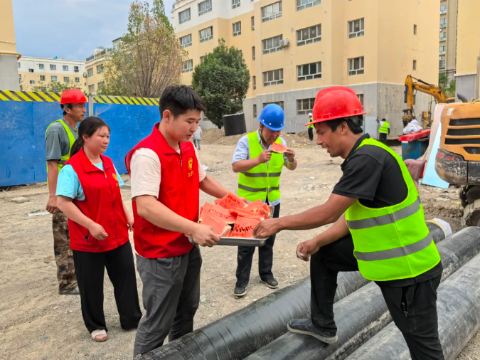博乐市青达拉街道书香社区新时代文明实践站联合辖区餐饮企业开展“酷暑送清凉,平安过盛夏”志愿服务,为辖区工人、外卖小哥、快递员、独居老人、执勤交警送去夏日的一丝清凉和问候。