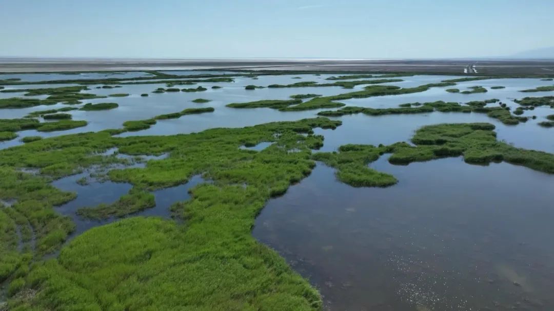 盛夏时节,走进艾比湖湿地国家级自然保护区,天蓝水清,碧波荡漾,各种野生鸟类在湿地自由翱翔、栖息、觅食,处处呈现出生机盎然的景象。