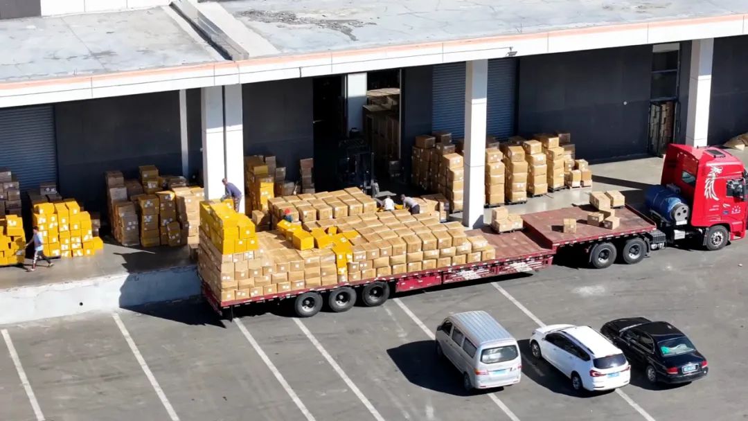 9月4日,在阿拉山口口岸跨境电子商务分拣清关中心库房外,停靠着载满跨境电商货物的运输车辆,满载着货物的集卡车来回穿梭,仓库内货物爆满,搬运工人们正忙着卸货理货,一派火热的繁忙景象。魏喜林是新疆沸点供应链公司的总经理,他告诉记者,今年公司的货运量相比去年有不少提升,本地的高效的通关效率是企业发展的重要保障。