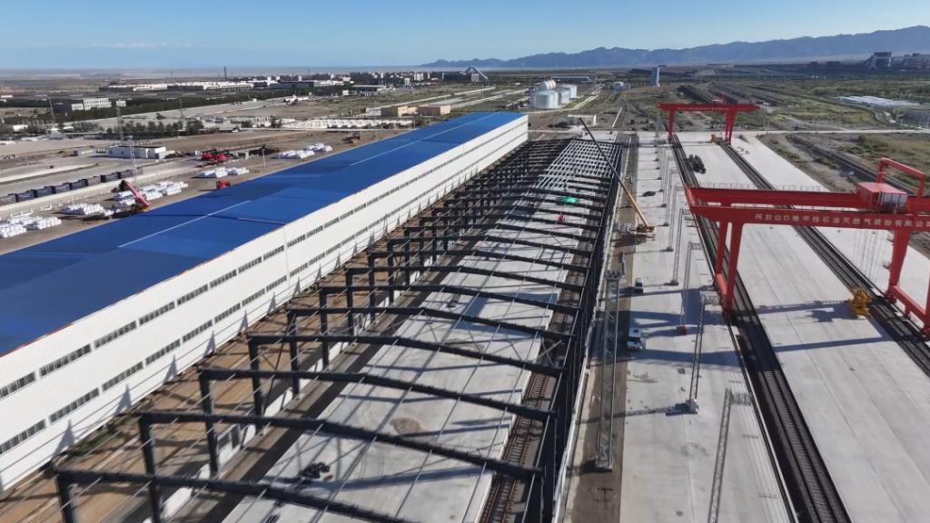 9月10日,阿拉山口口岸铁路站区钾肥换装线建设项目施工现场一片繁忙景象,挖掘机、起重机、混凝土泵车等大型机械设备马力全开,轰鸣声此起彼伏,运土车辆往来穿梭,施工人员忙着进行钢架檩条安装等精细作业。临近“中秋”佳节,为抢抓施工进度,项目紧盯时间节点加速冲刺,通过统一管理、科学规划、加班加点,实时加强人力、机械调配,确保工程施工进度有序。