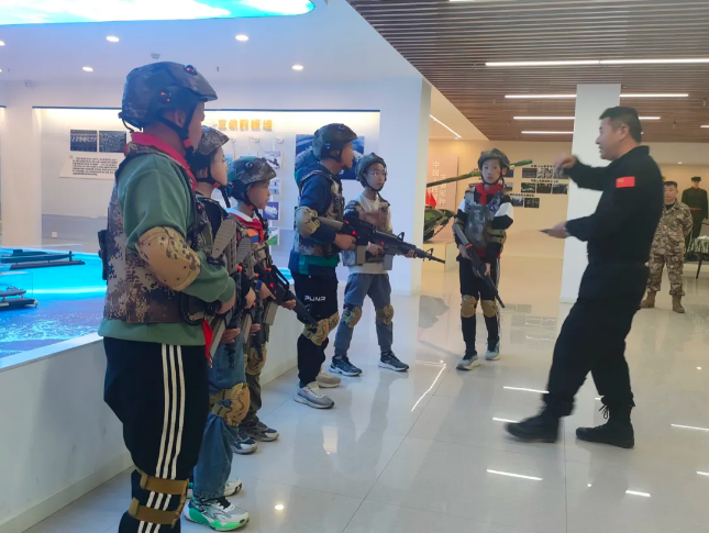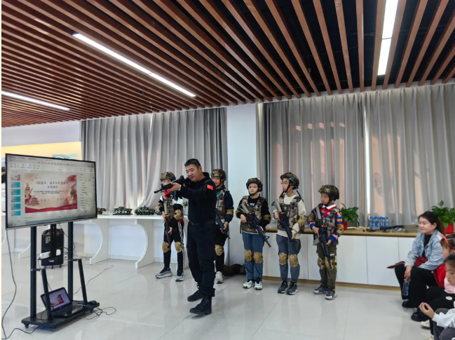 随后,贾伟为青少年们带来了专业的“三大步伐”训练讲解。他姿态规范,动作标准,让青少年们对军人有了更直观的认识,接着,他还进行了“CQB战术”演练,给在场的同学们生动展示了军人在实战中的英勇与智慧。青少年们看得目不转睛,纷纷表示要向军人学习,将来为国家的安全贡献自己的力量。