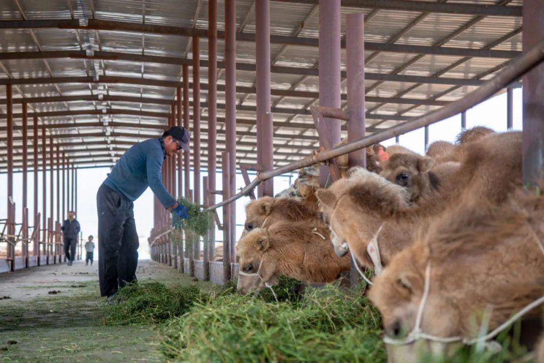 在朋友的推荐下,依斯哈提接触到伊犁州伊宁县的伊犁雪莲乳业有限公司,并与其达成合作关系。有了稳定的销售渠道,他的养殖规模不断扩大,从最初的20峰发展至450峰,如今,依斯哈提每三天就能向企业输送一吨新鲜驼奶。