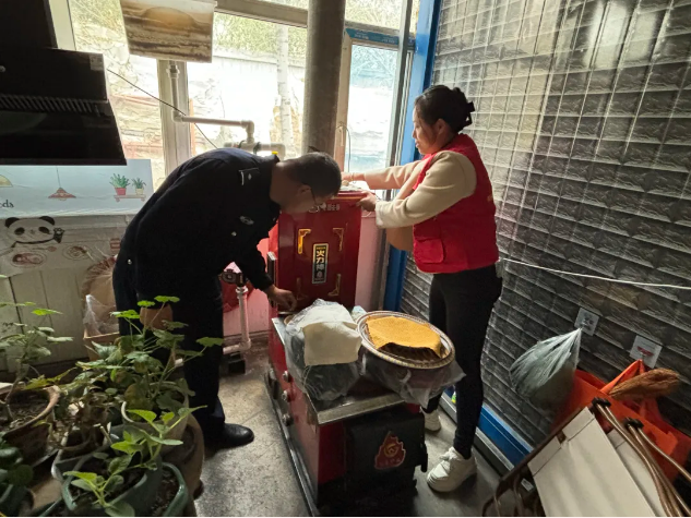 入户过程中,社区工作人员及民警重点来到用煤炉取暖的企业商铺,详细询问他们冬季取暖的准备情况,除查看了常规的取暖设备、燃料储备和房屋保温措施外,还检查了一氧化碳报警器是否处于正常工作状态。并向企业商铺老板强调了报警器在预防一氧化碳中毒方面的重要作用。