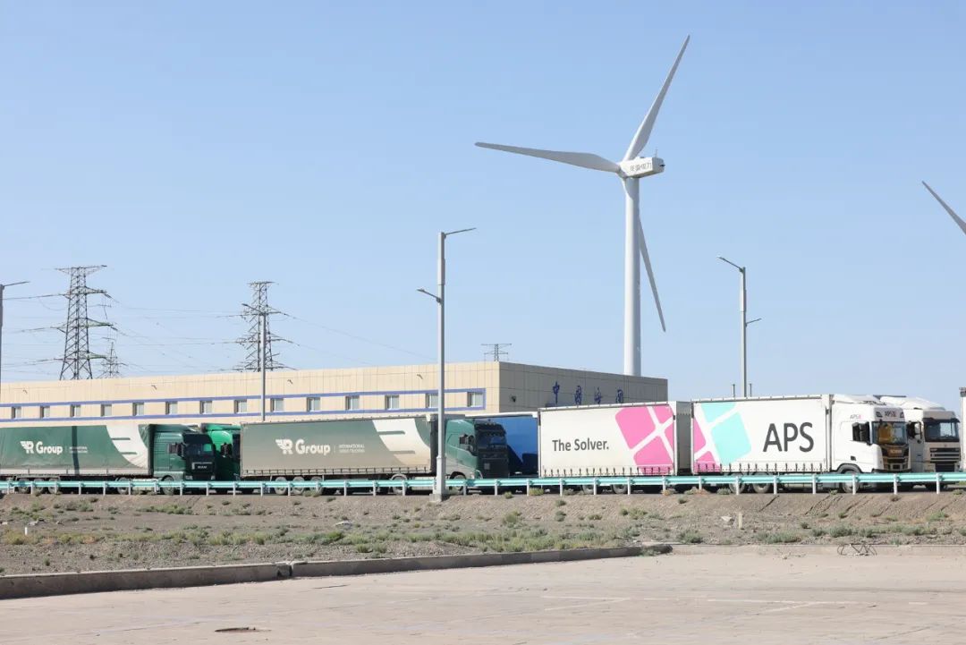 临近中午,在阿拉山口市边民互市贸易区,一辆辆货车满载货物,纷纷驶出国门,前往哈萨克斯坦、吉尔吉斯斯坦、塔吉克斯坦等中亚国家。