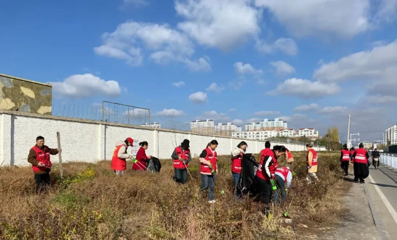 10月25日,博乐市青达拉街道八一路社区全体工作人员联合博乐市总工会、八一薪火志愿救援服务队开展卫生整治活动。
