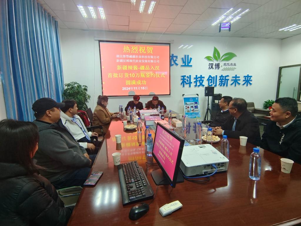 近日,由新疆汉博现代农业发展有限公司研制雪莲菇牛肉酱,获得湖北楚鄂藏疆农业科技有限公司首批10万瓶订单,双方在博乐市达勒特镇乌兰布呼村进行合约签订。